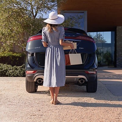 With the MKC key fob in your pocket or purse, simply kick your foot under the rear bumper and the available hands-free liftgate will effortlessly glide open to reveal the rear cargo area. Press a button on the liftgate or kick your foot under the rear bumper again and the liftgate closes smoothly.